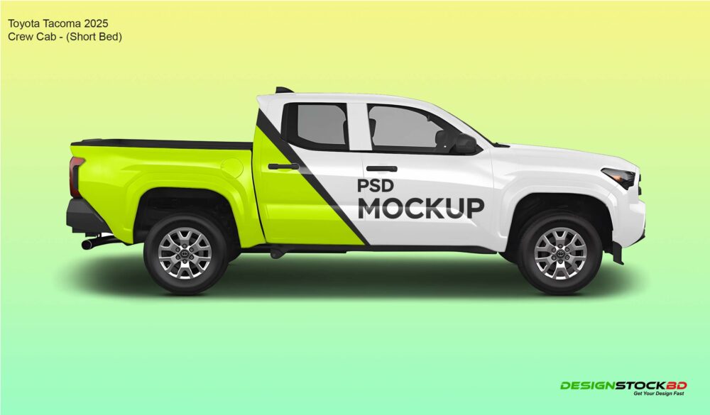 Toyota Tacoma 2025 – Crew Cab, Short Bed | Vehicle Wrap Mockup PSD